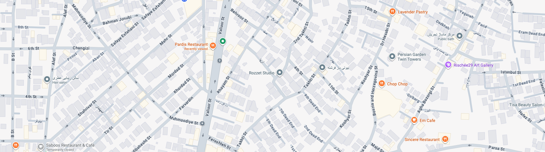آدرس: تهران، خیابان ولیعصر، بالاتر از پارک وی